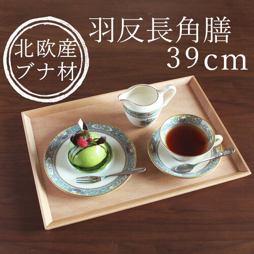 【10%OFFクーポン有り】【トレー】 羽反長角膳 39cm 北欧産ブナ材 ナチュラル(木製トレー トレイ お盆 会席膳 ランチョンマット カフェ おしゃれ 木のトレー 業務用)001-3994