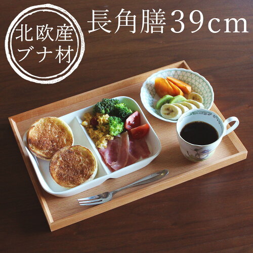 【10%OFFクーポン有り】【トレー】長角膳 39cm 北欧産ブナ材 ナチュラル(木製トレー トレイ お盆 会席膳 ランチョンマット カフェ おしゃれ 木のトレー 業務用)001-3991