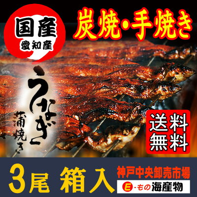 【送料無料】国内産 炭火焼きうなぎ蒲焼3尾(タレ3本付き)【3尾 箱入り】(ウナギ 蒲焼 かばやき 丑の日 鰻 )【北海道・沖縄へは別途送料500円かかります】